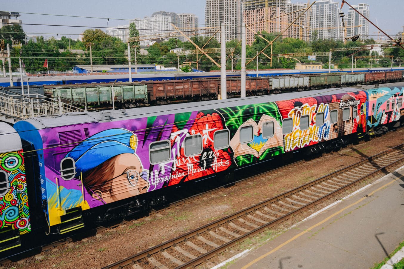 Фото. В Україні запустили «Потяг до перемоги»: його вагони розписані артом українських митців