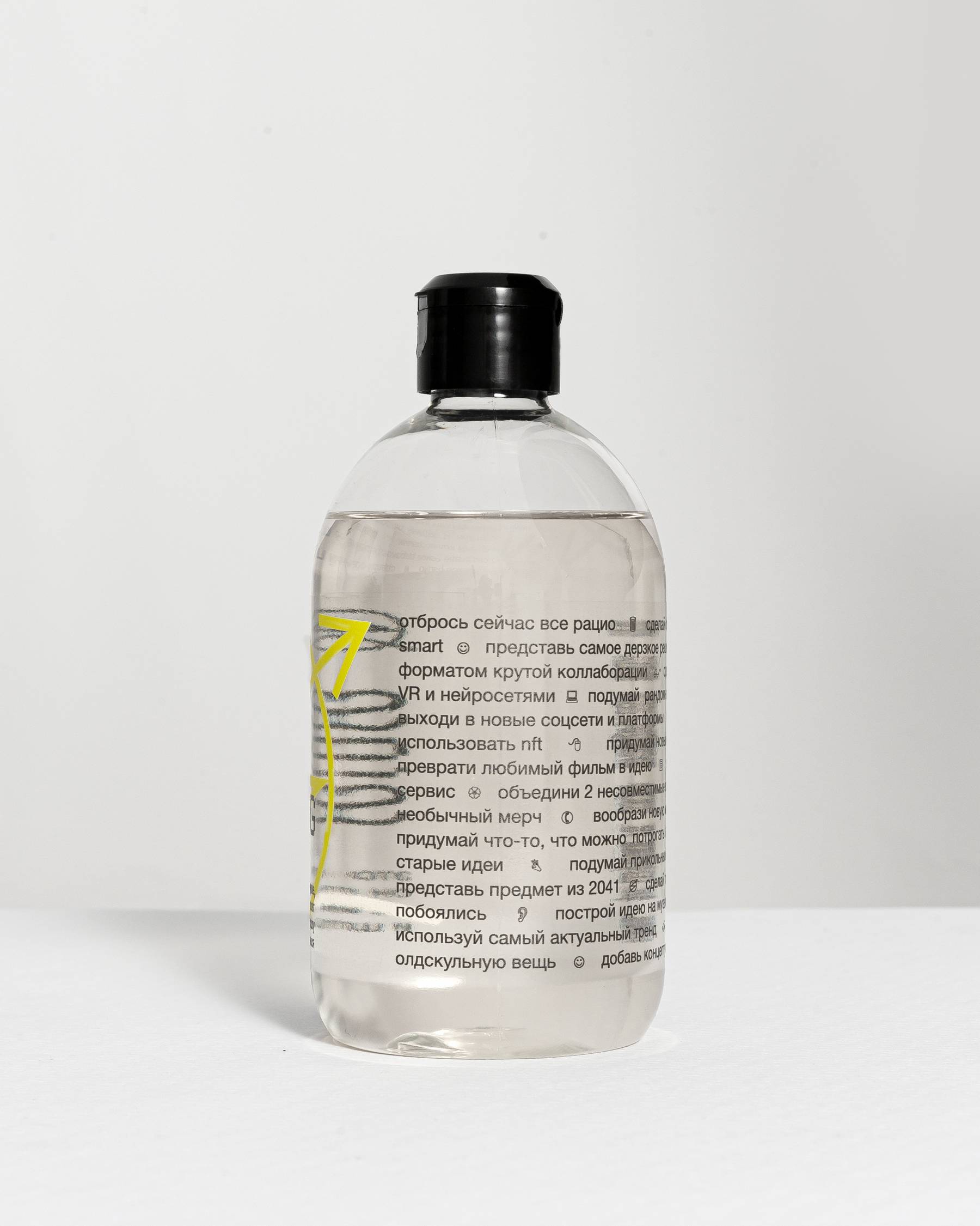 На етикетці флакона розмістили 25 питань, концепцій і думок, кожна з яких – поштовх до ідеї, яку можна розвивати і застосовувати для особистого бренду або у проєктах різних сфер.