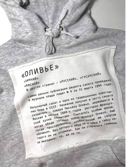 На них розписана історія страви та спосіб приготування. Світшоти та худі є в декількох кольорах – білому, сірому і чорному.