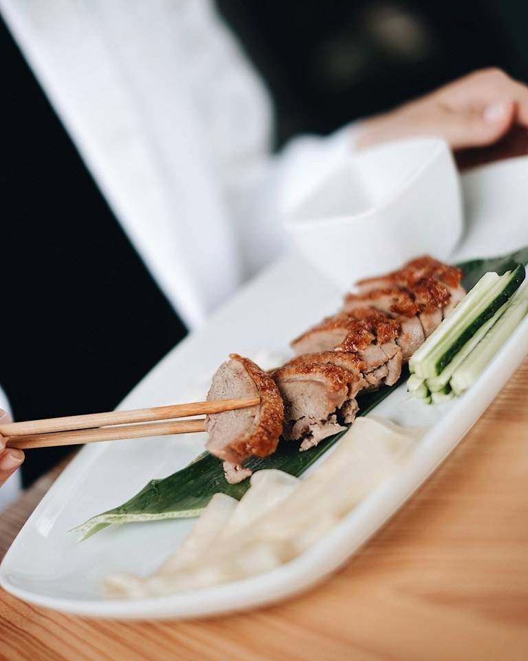 Фірмова страва в Duck, Please – качка по-пекінськи, також готують качку по-шанхайськи. У ресторані можна замовити як порцію, половину качки, так і цілу страву.