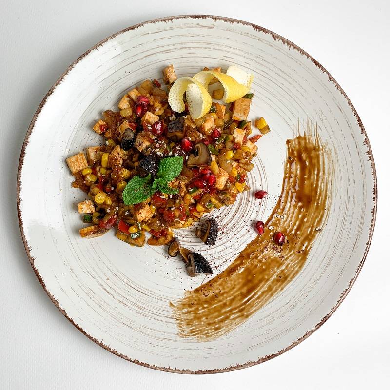 В меню: вегетаріанські страви та напої. На сніданок можна замовити веганський омлет, сирники з солоною карамеллю або сендвіч з бананом і карамельним соусом. На десерт пропонують крафтові веганські круасани без лактози і цукру, кокосовий «Наполеон», а також шоколадний торт без глютену.