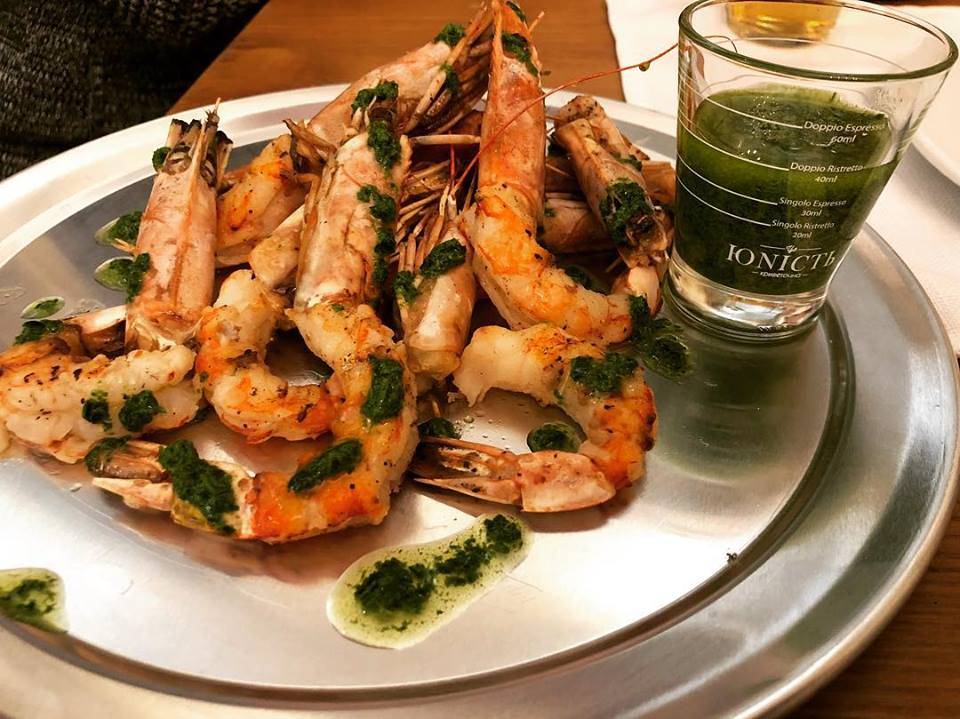 Ціни: тигрова креветка без голови — 30 грн (1 шт.), асорті з креветками середнє — 380 грн, аргентинська креветка з головою і хвостом — 35 грн (1 шт.), 1/2 дюжини аргентинських креветок — 200 грн, скумбрія атлантична гарячого копчення — 72 грн, шакшука з окунем — 98 грн, хумус із фреш шпинатом, кульками з домашнього сиру Special і грінками — 78 грн, том ям — 154 грн