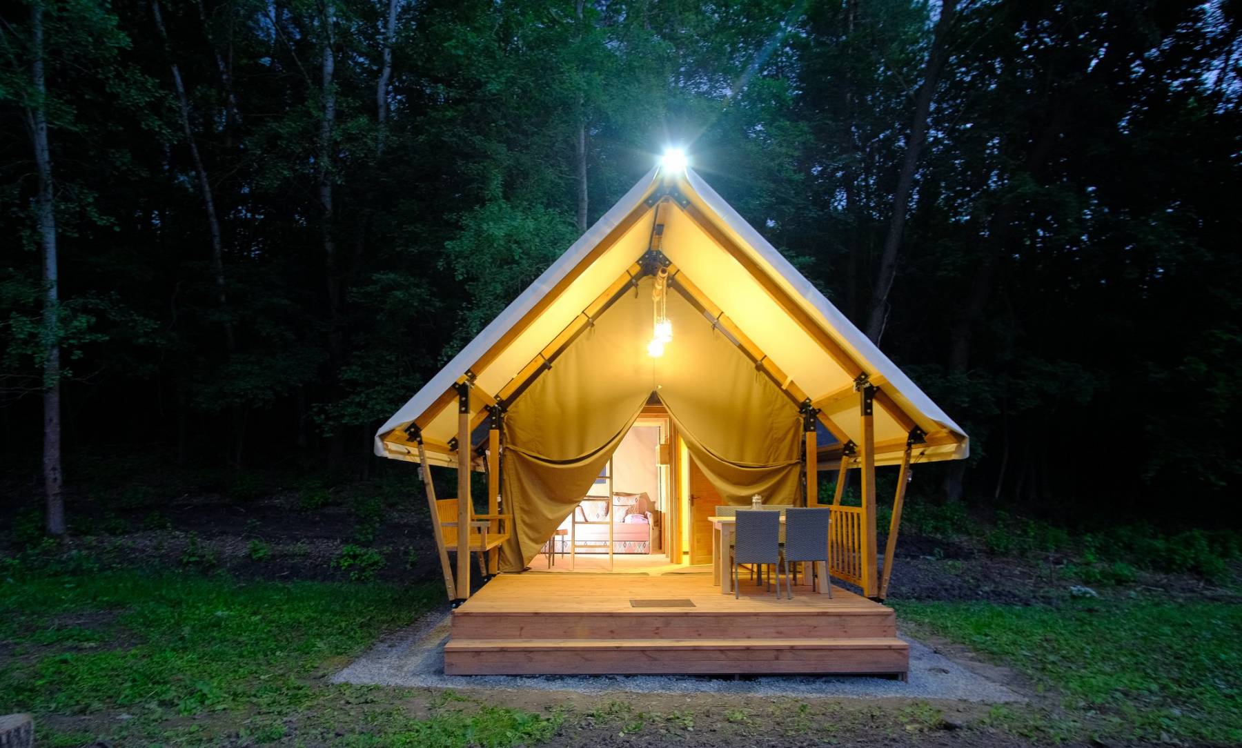 У селі Уляники в 90 кілометрах від Києва працює глемпінг «Шатро». Тут можна відпочити в будинках на природі з готельним комфортом.