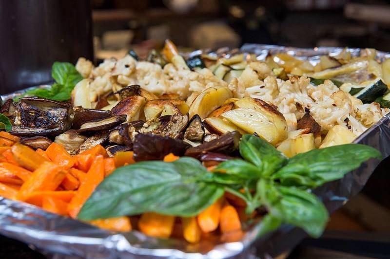 Есть супы, салаты, десерты традиционные и сыроедческие, смузи, хлебцы, закуски. Все нежирное, сырое или запеченное, с большим количеством овощей и фруктов.