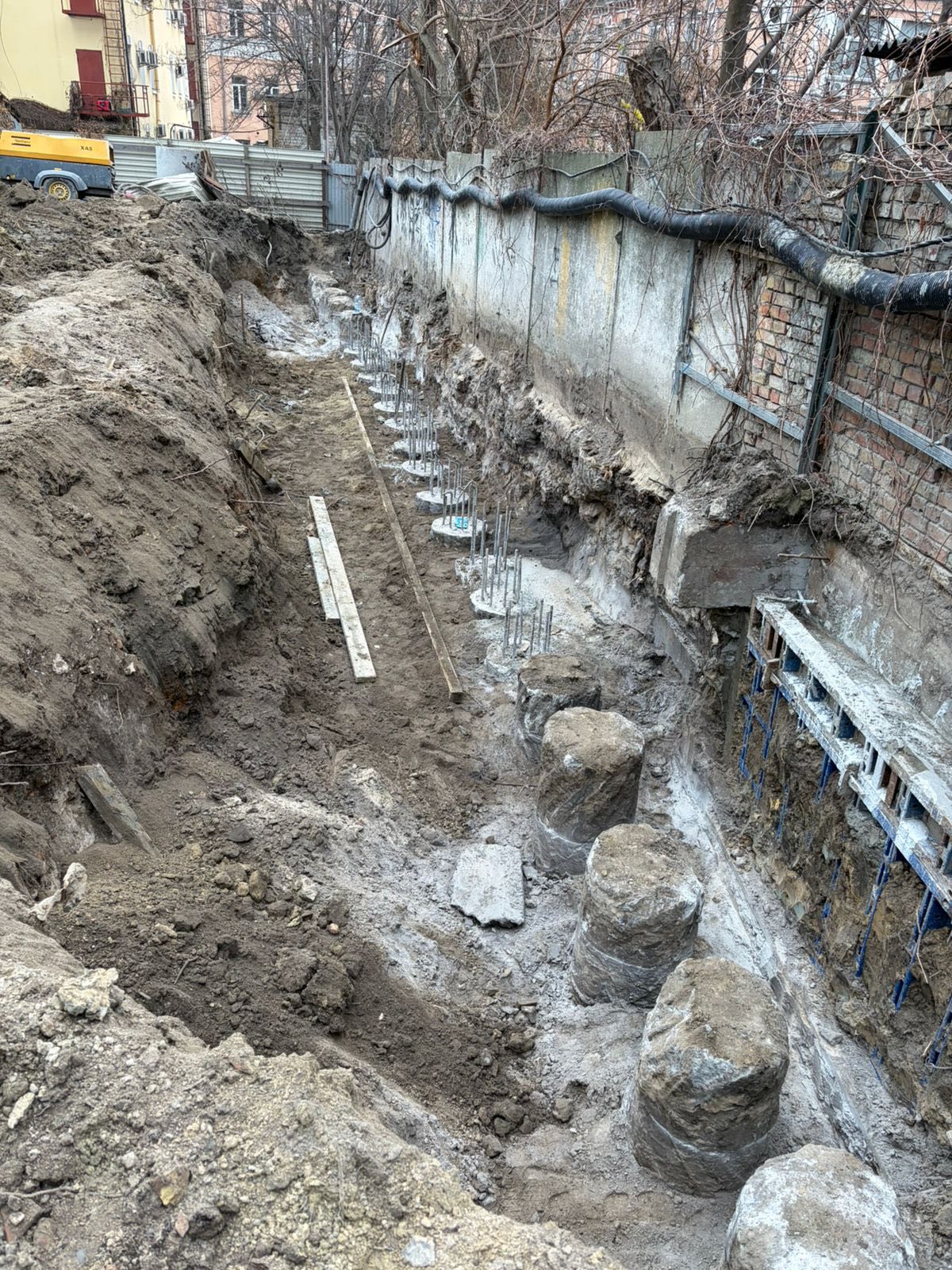 За результатами інспекції 8 грудня спеціалісти ДОКС зафіксували проведення непогоджених земляних робіт, влаштування бетонних паль та будівництво підпірної стіни. У Департаменті наголосили, що ці роботи не передбачені проєктом «Реконструкція нежитлового будинку (літ. А) під офісно-учбовий центр».