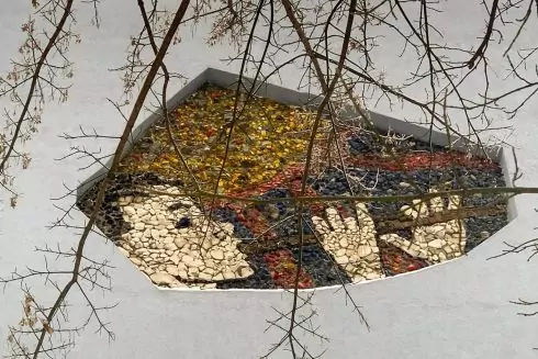 Київський державний фаховий хореографічний коледж імені Тетяни Таякіної під час термомодернізації зберіг мозаїку на фасаді спального корпусу: її оминули в процесі утеплення будівлі. Про це повідомила дослідниця монументального мистецтва Олена Борисова.
