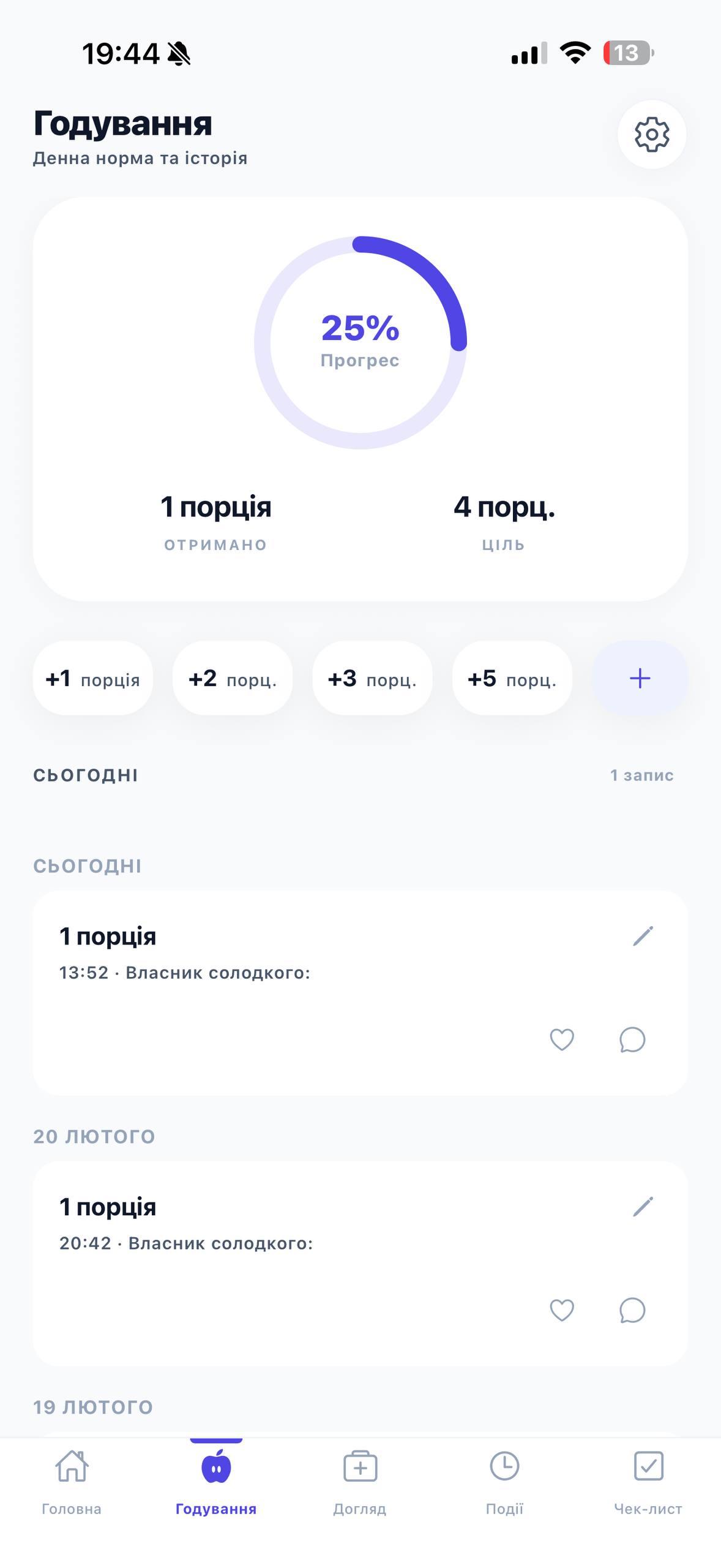 У застосунку передбачений «розумний» розрахунок корму: система показує, чи виконана денна норма та коли закінчиться упаковка. Також доступний щоденник харчування з можливістю фіксувати кожне годування.