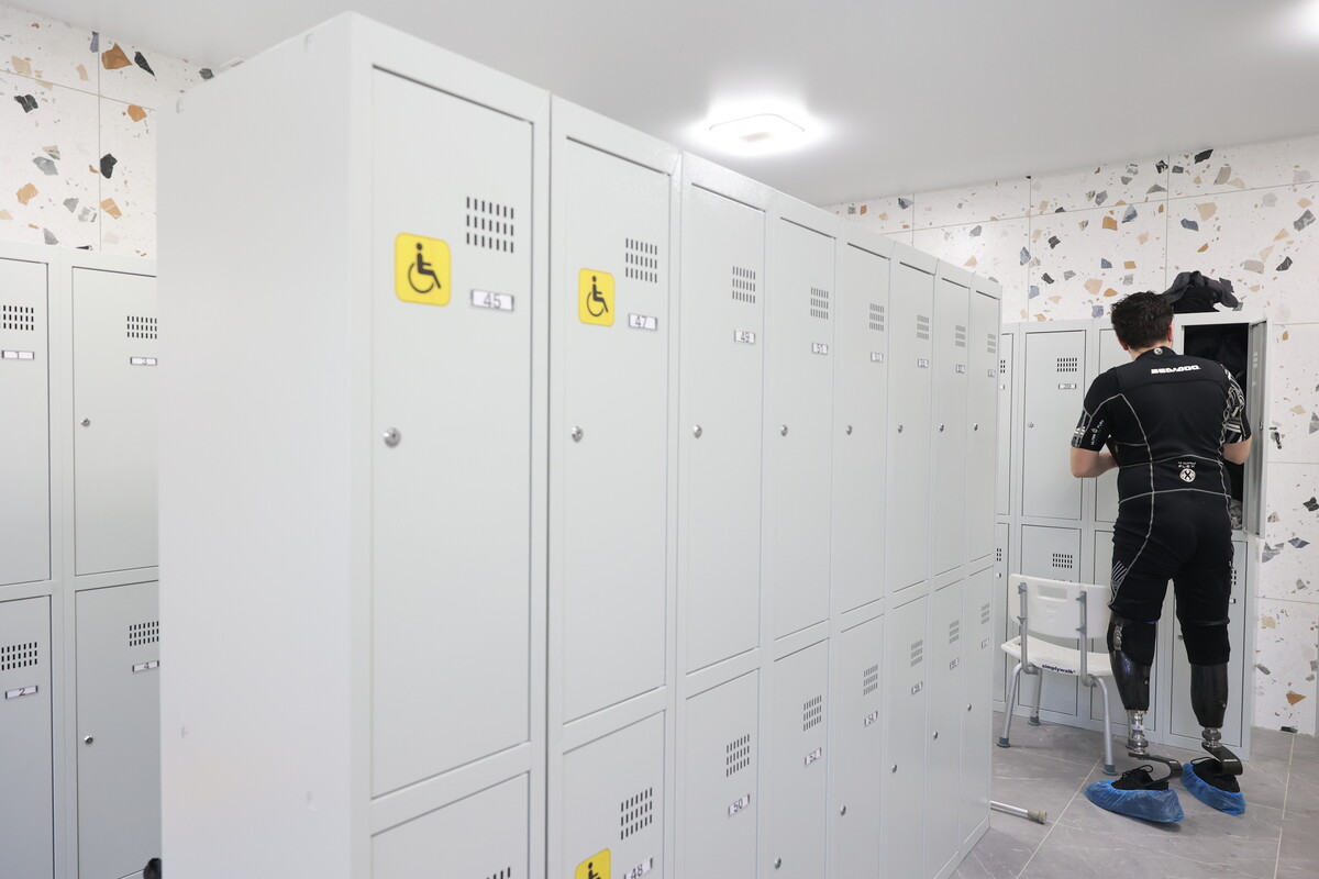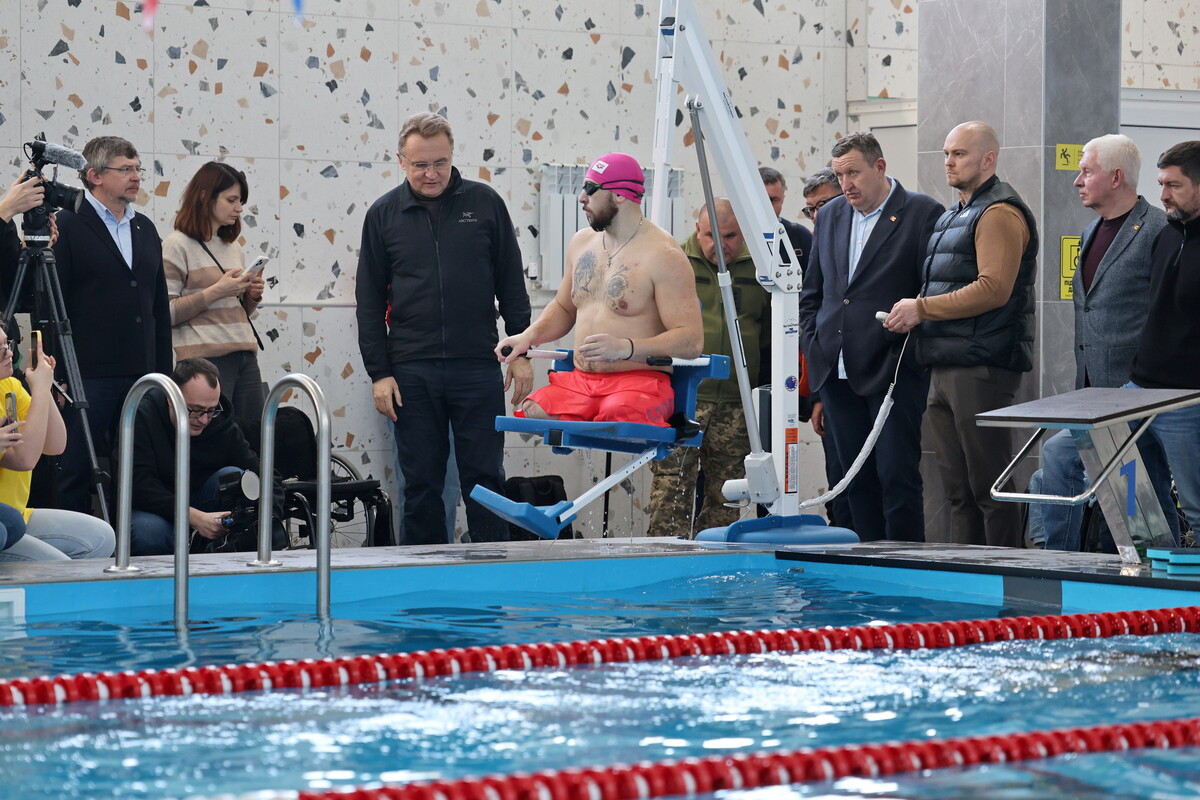 Окрім спеціальних приміщень для користувачів крісел колісних, на об’єкті змонтували сучасний підйомник вантажністю до 227 кг, що дозволяє самостійно спускатися у воду.