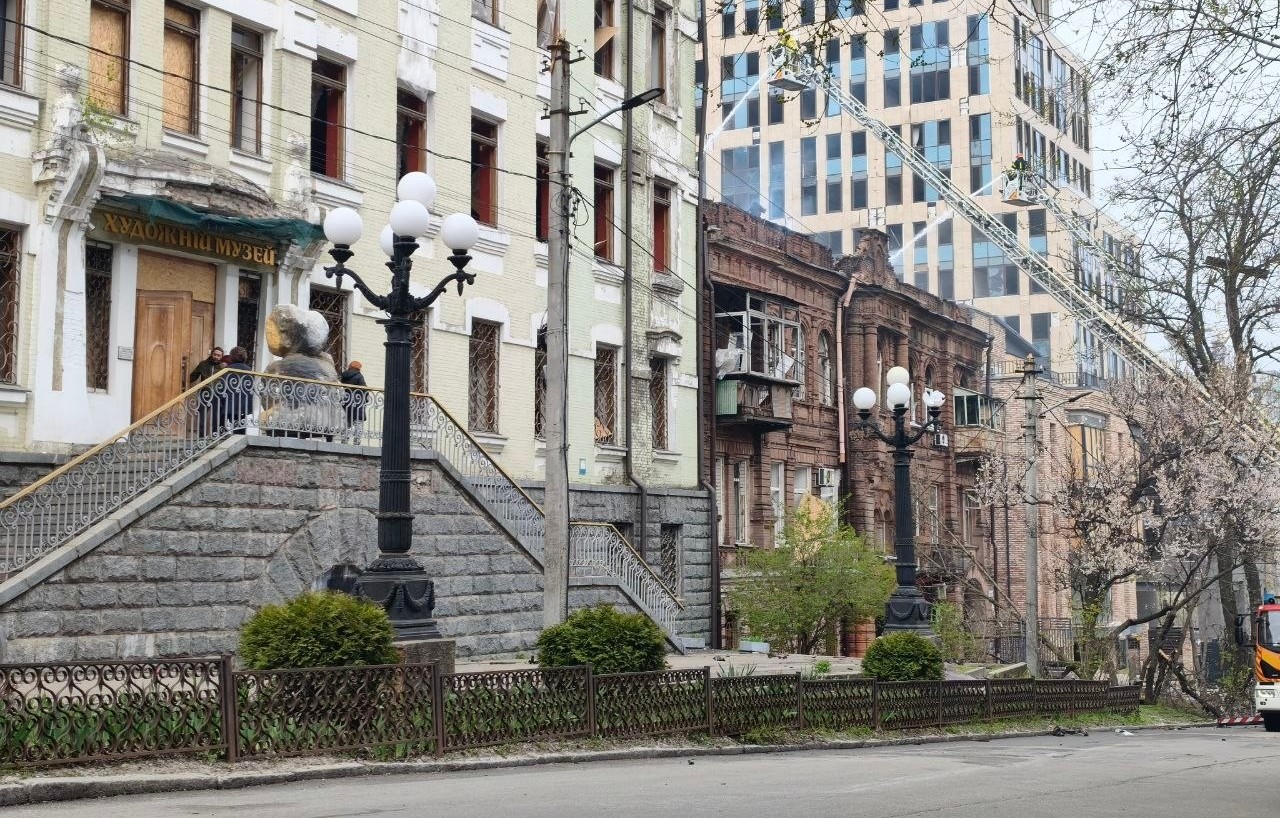 У ніч проти 16 квітня російські війська здійснили масовану ракетно-дронову атаку на Дніпро. У місті зафіксували пошкодження на 11 локаціях, серед них — будівля Художнього музею, пише «Відомо».