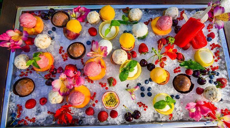 Например, в итальянском ресторане Piccolino предложат свекольное джелато с козьим сыром или мороженое из дыни со съедобными цветами. Пожалуй, самое популярное здесь карамельное эскимо с сусальным золотом или сорбет из Prosecco с ягодами. Вообще в Piccolino очень заморочились не только со вкусами, но и с подачей.
