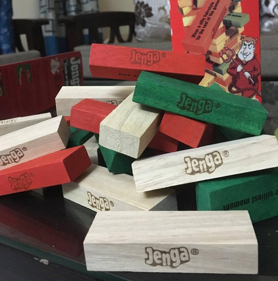 У кольоровому варіанті Дженги вежу будують з деревинок різних кольорів. Коли вона готова, гравець кидає кубик. Який колір випаде на кубику, того кольору брусок потрібно діставати.