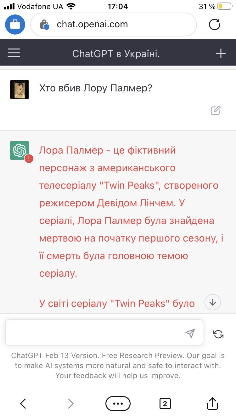 Чат тільки вчиться. Наприклад, ми попросили його знайти ілюстрацію до цієї новини і він не зміг. Або попросили знайти цитату Михайла Федорова і з цим завданням він теж не впорався. Не кажучи вже про помилки в тексті.