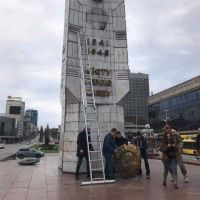 Фото. З обеліску на площі Перемоги демонтували зображення Леніна