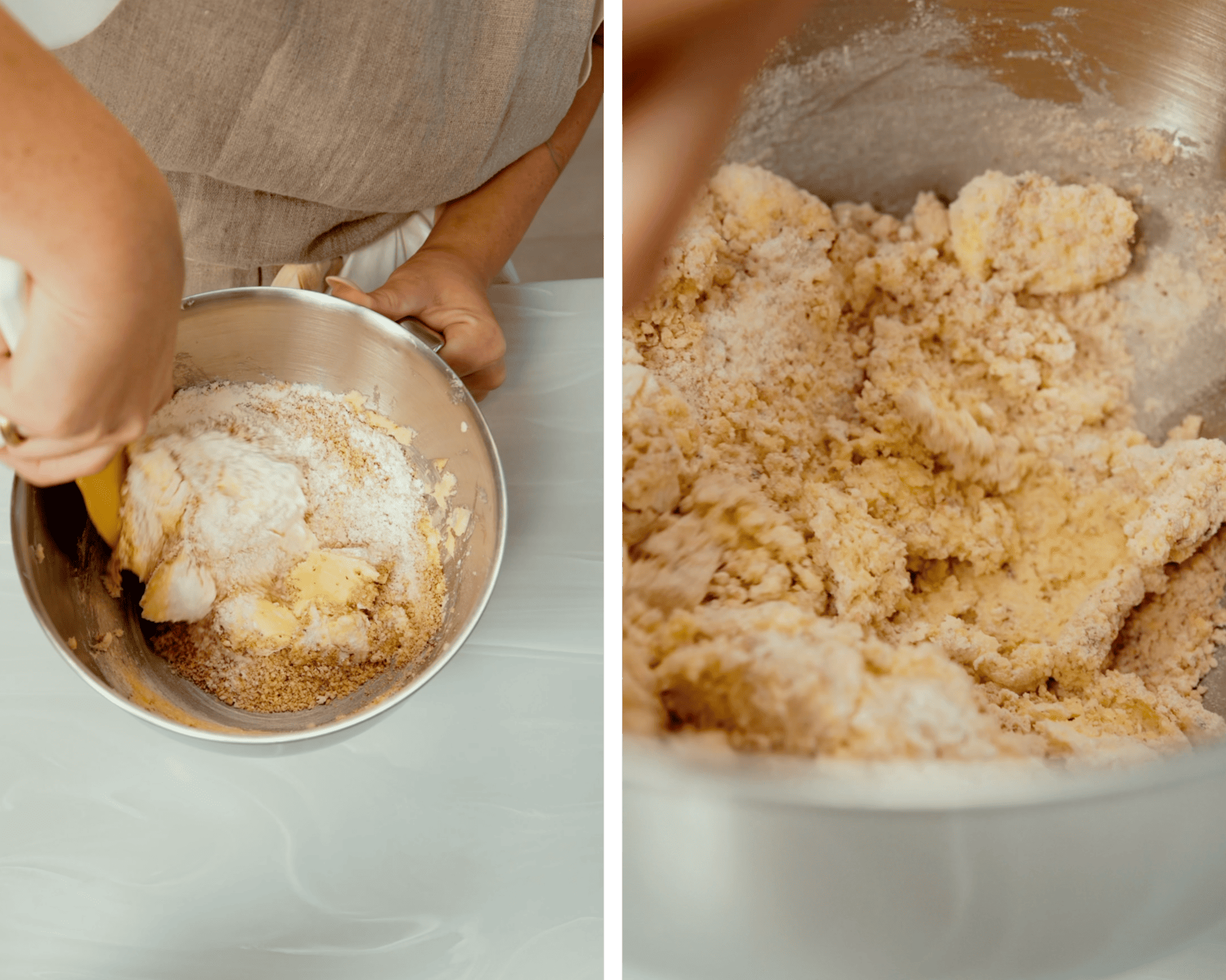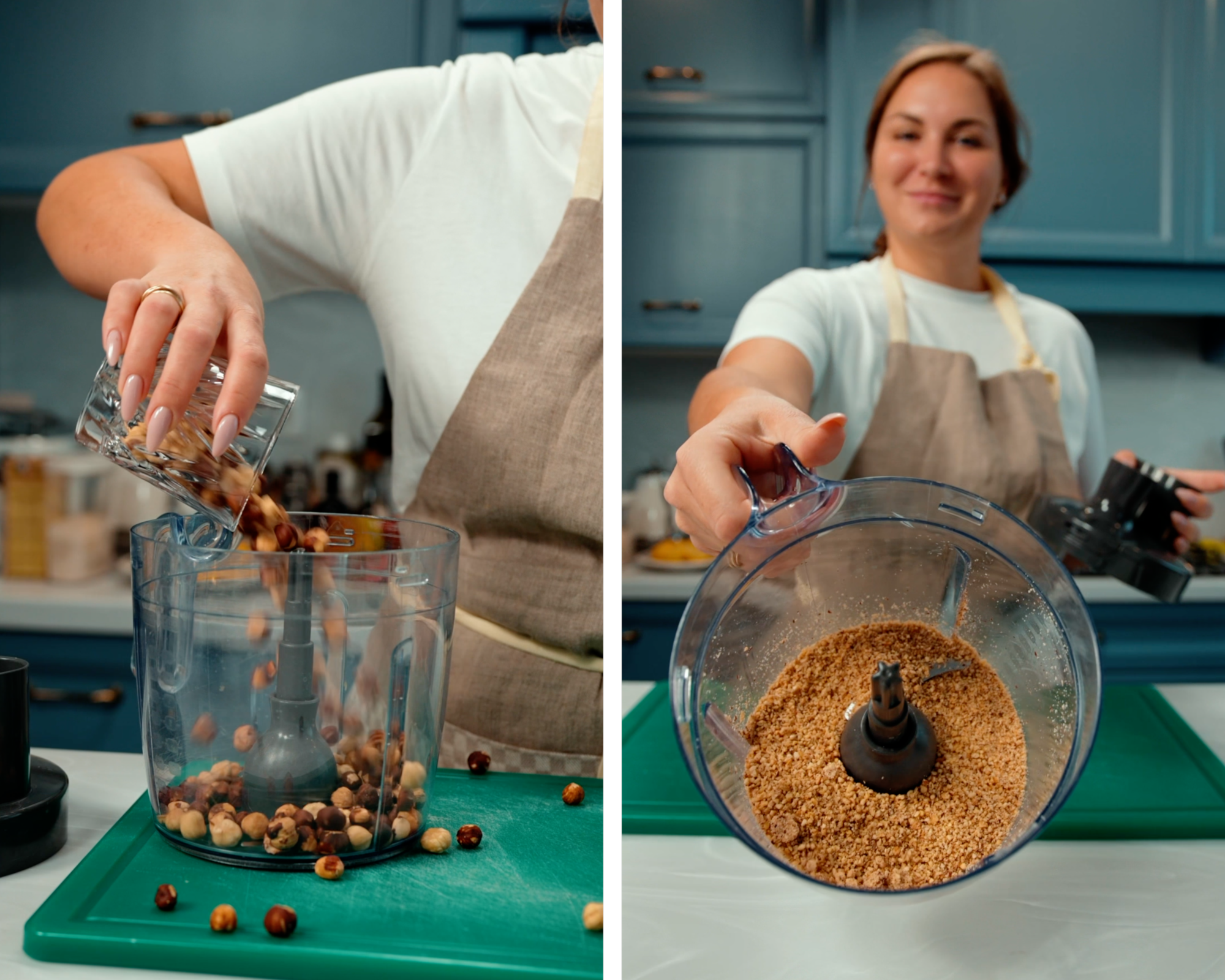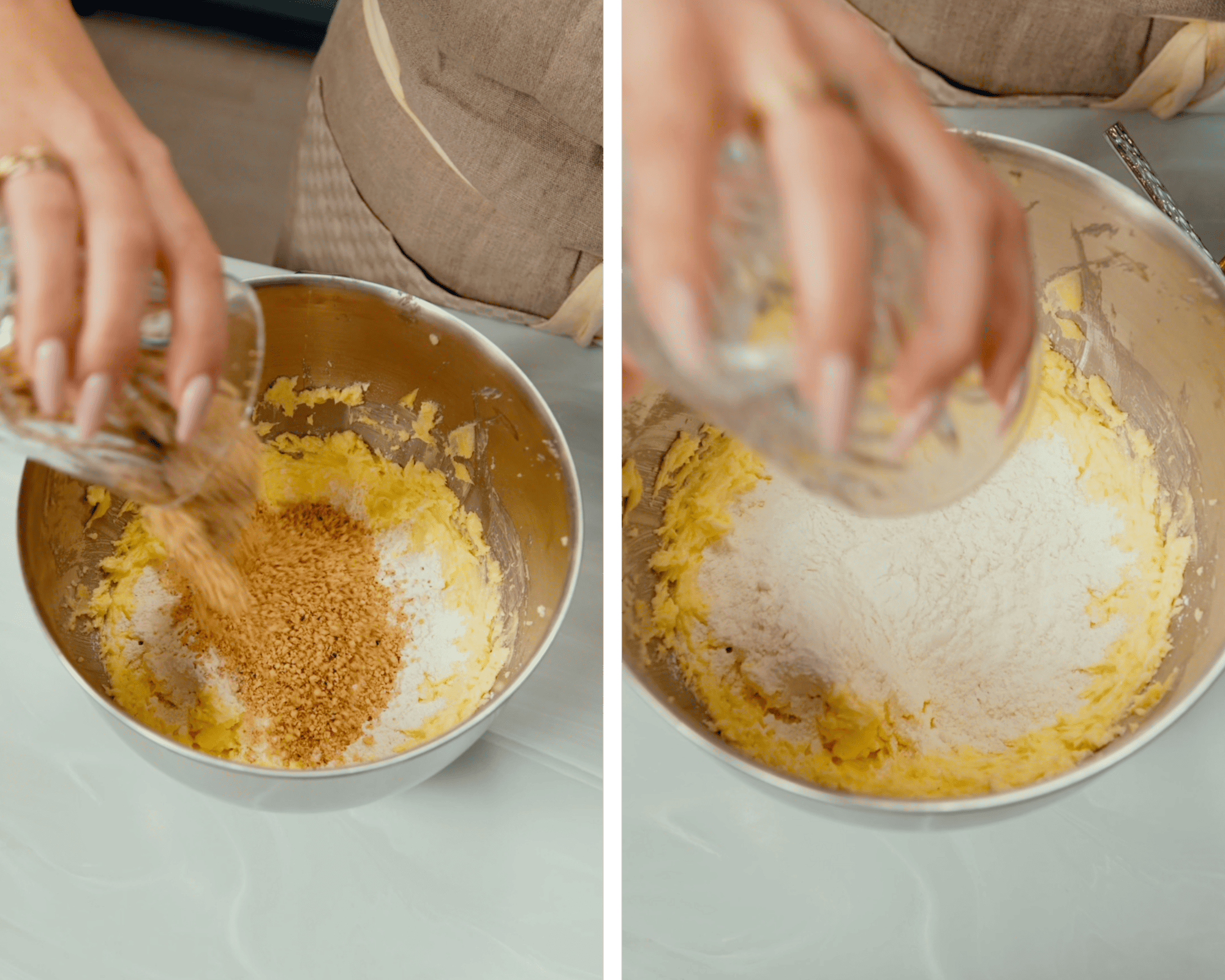5. Додати борошно, горіхи, розпушувач і сіль. Вимісити лопаткою