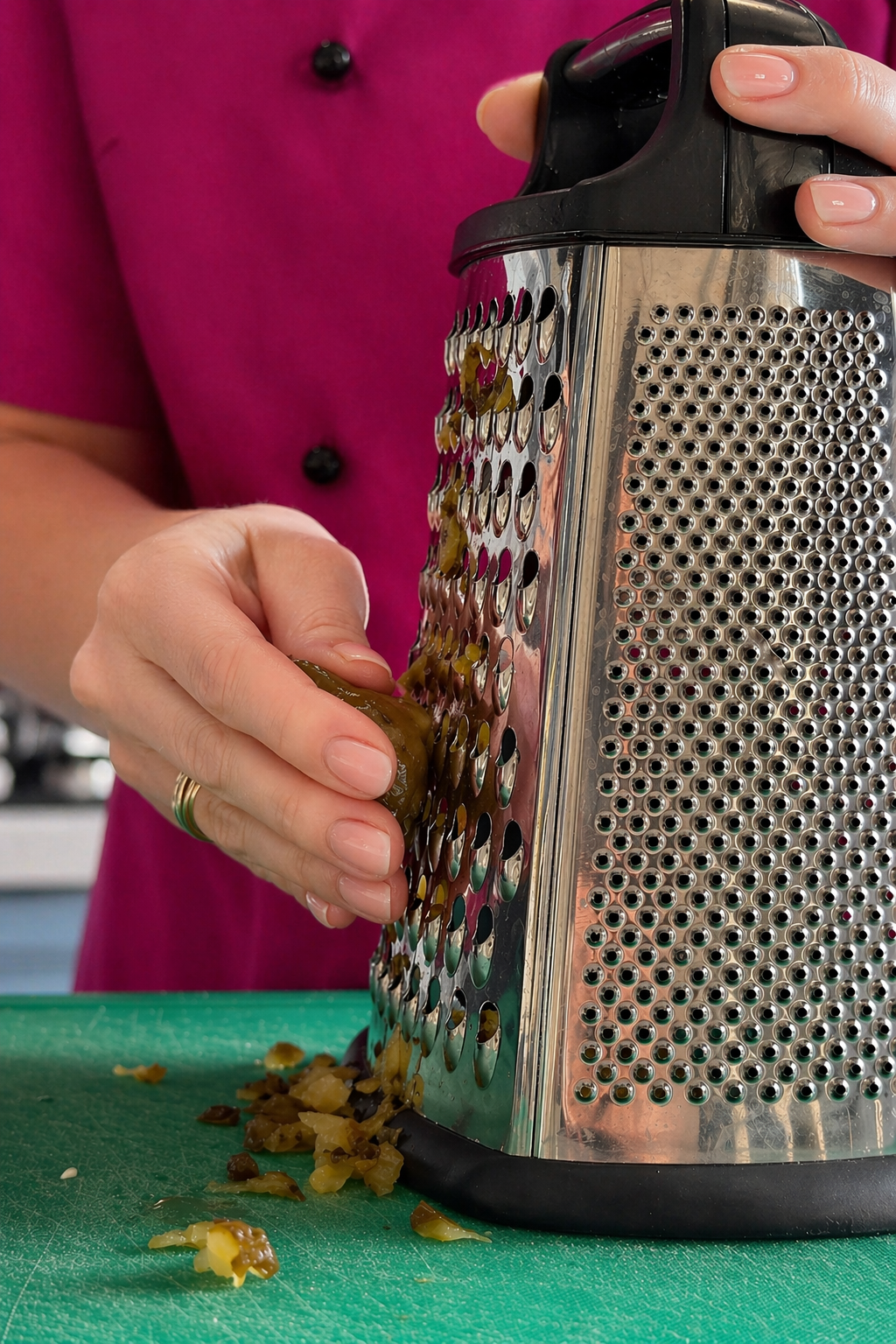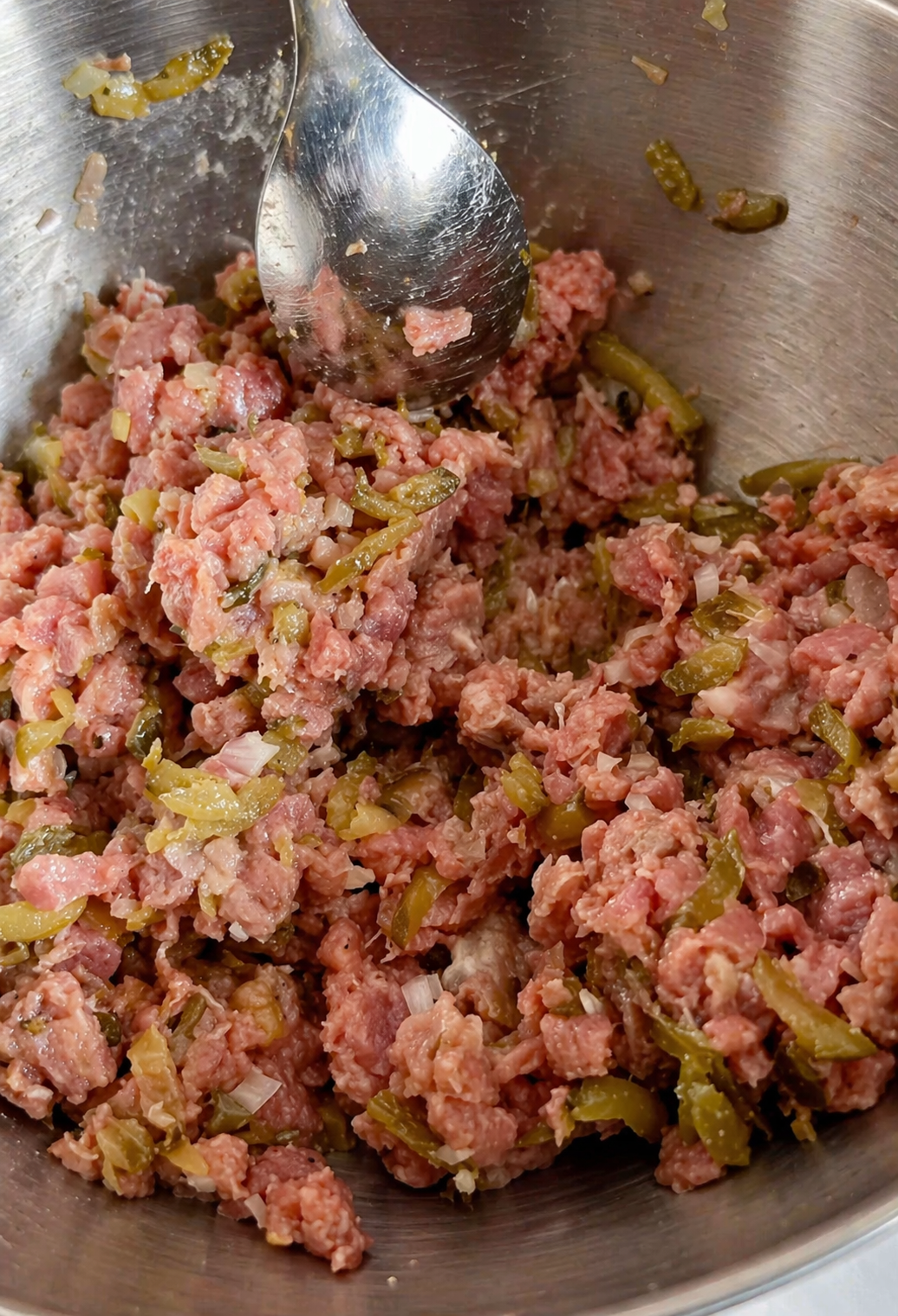 2. Цибулю нарізати ще дрібнішими кубиками, огірки натерти на тертці. Додати до мʼяса.