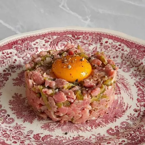 Паралельно із цим у французькій кухні вже існував тартар — холодний соус із каперсами, корнішонами та гірчицею. Десь на межі XIX-XX століть ці дві страви перетинаються: сире мʼясо + гострі, «тартарні» приправи. Так народжується tartare de boeuf — у формі, яку ми знаємо сьогодні. У класичних французьких брасері тартар швидко перетворився не просто на страву, а на перформанс, його дуже часто змішують прямо при гостеві.